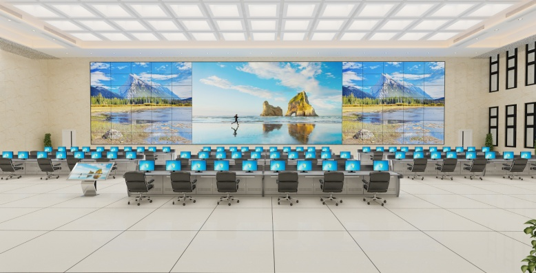 数字智慧集控中心运行平台,可智能调节控制室照明灯光,可随机触控照明开关,亦可根据工作时间设定环境照明开启,大屏幕显示亮度可随集控中心整体照明强弱智能调节,达到运行人员舒适的工作环境,亦可延长显示设备的使用寿命;有效避免光污染,还可通过手动、自动设置、分时调节多种方式进行亮度调节;可根据大屏幕显示器及其周围环境的亮度变化自动调整照度,从而达到在运行模式、展示模式、检修模式出色的照明状态;