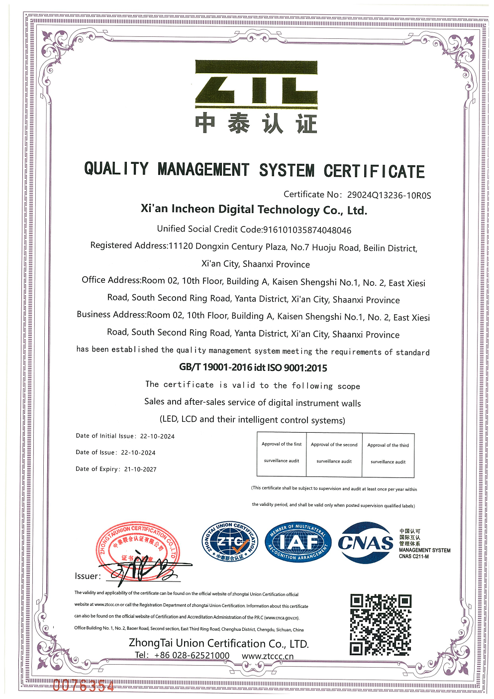质量管理体系认证证书