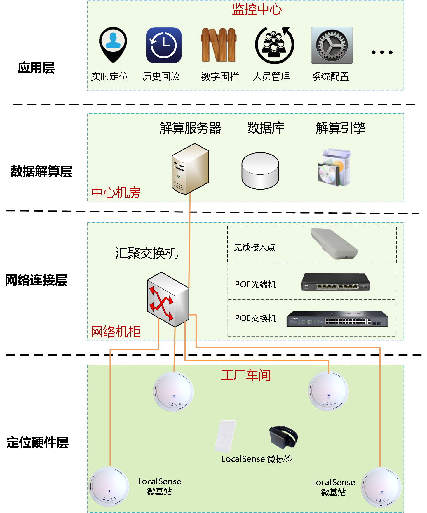3、电子围栏:当工人进入危险区域或进入其他不允许活动的区域时,LocalSense® 无线定位系统能够分析出这种非正常的情况,并及时做出报警信息,为管理人员提供重要参考。